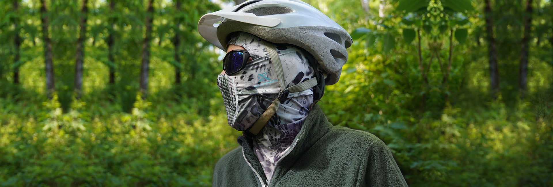 Combined Face Mask and Balaclava with soft, breathable, moisture-wicking material. Mesh nose and mouth covering for maximum breathability.